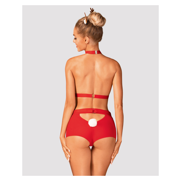 Tanga combinado de raso y rejilla con botones de presión en el centro de la bolsa.