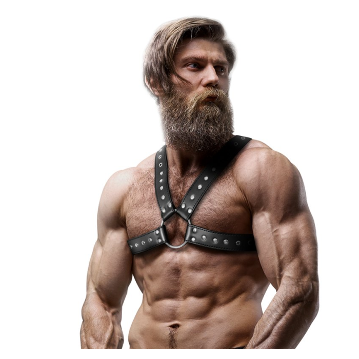 IMPRESIONANTE arnés frontal para el pecho. Este atrevido arnés pectoral realza la figura masculina y potenciar tu imagen sexual de chico malo. Gracias a su material adaptable, es fácil de poner y tiene un tallaje flexible que se ajusta perfectamente a tu cuerpo.